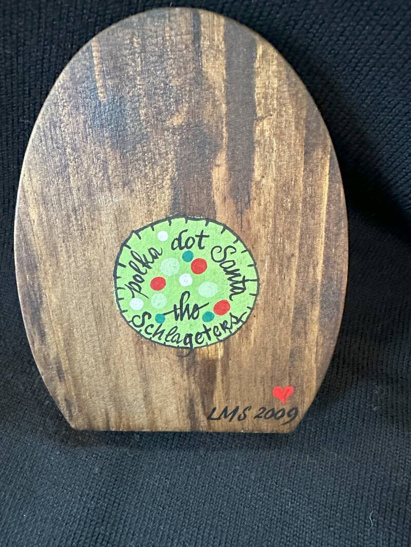An oval piece of decorative trim wood ...cut flat on the bottom. I always wanted to paint a quilt-type Santa.