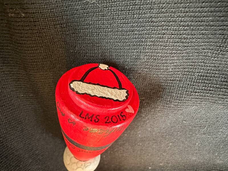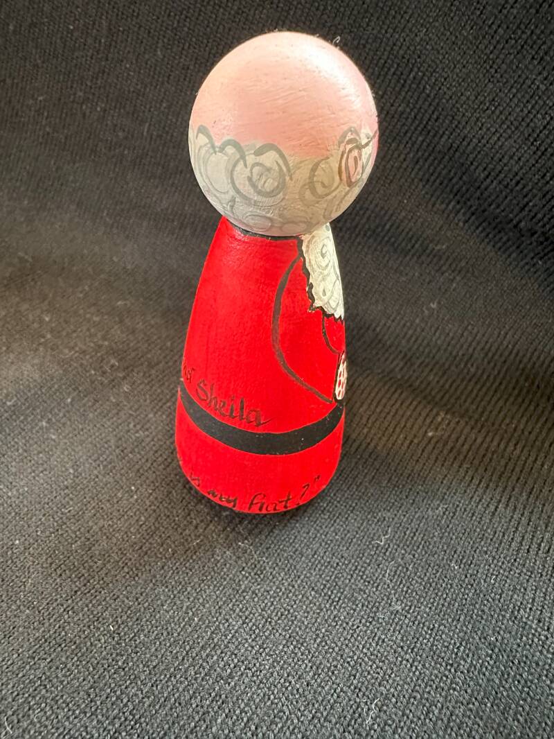 Wooden craft doll from a craft store... bald Santa... his hat is painted on the bottom!